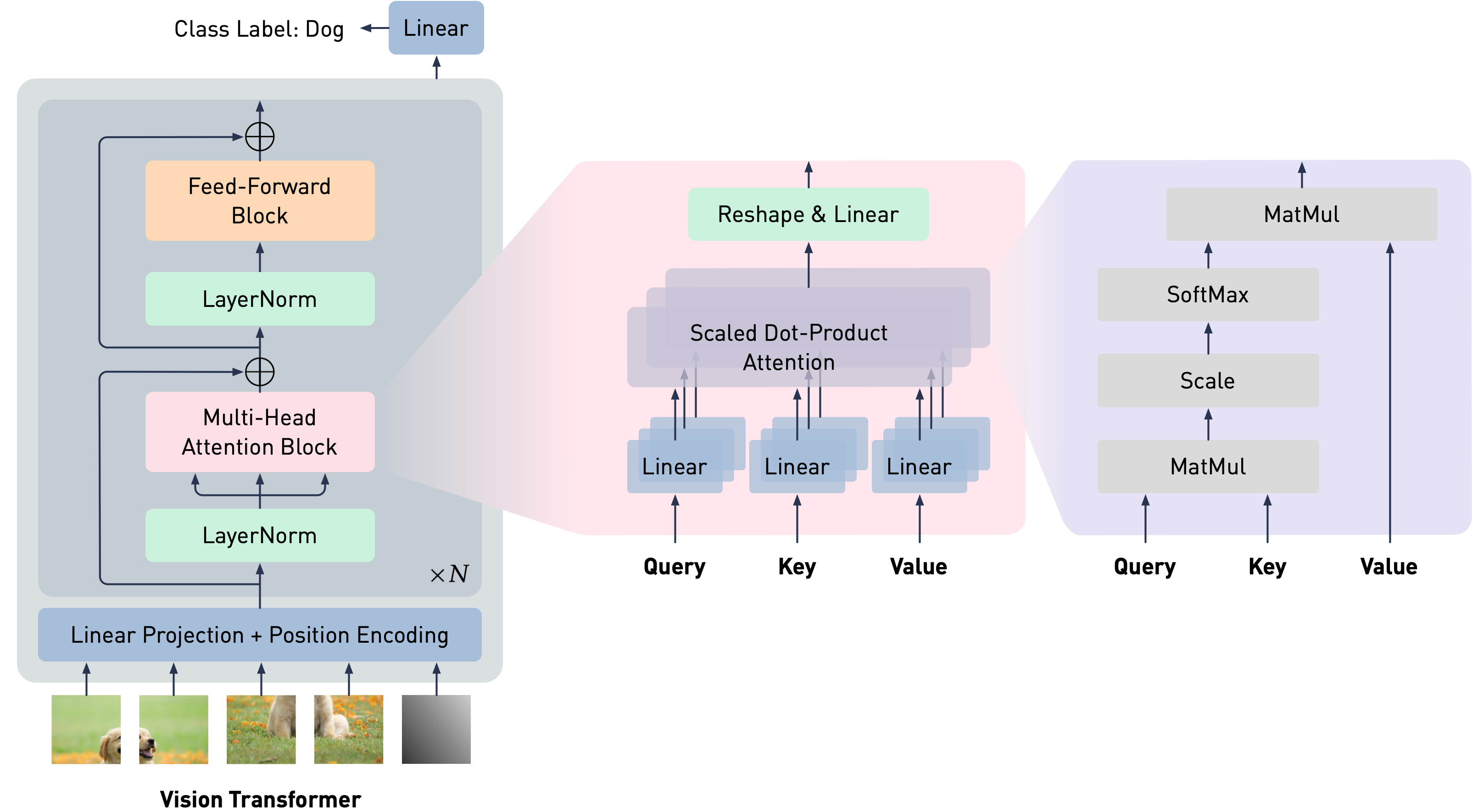 Here is an example I redesigned, illustrating the architectural details in Vision Transformers (ViTs).